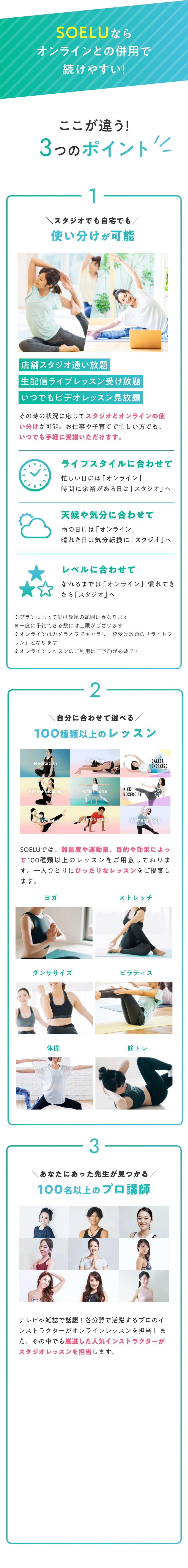 パーソナルのみプランと、ヨガ・ピラティスなどスタジオレッスンも受けられるセットプラン(月税込25,058円〜)がございます。