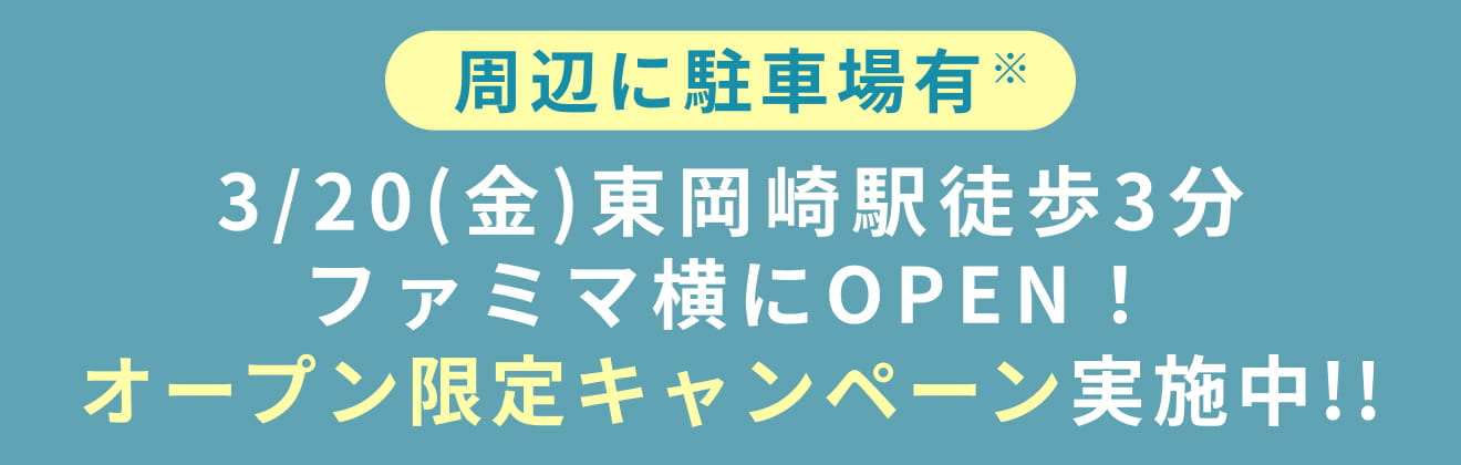 東岡崎駅徒歩3分、接骨院跡地・ファミリーマート横のところにあります。