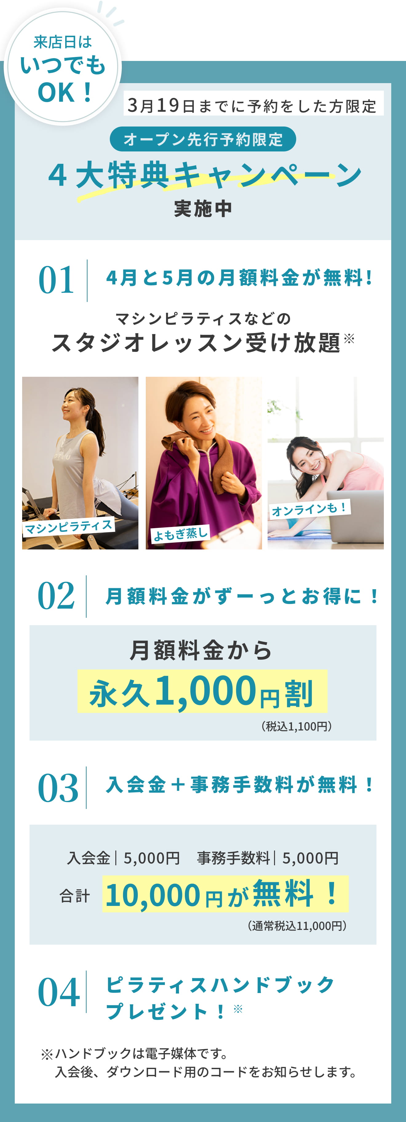- 人数制限のあるキャンペーンの場合は、ご入会人数が上限に達した場合、キャンペーンは期限前に終了させていただくことがございます