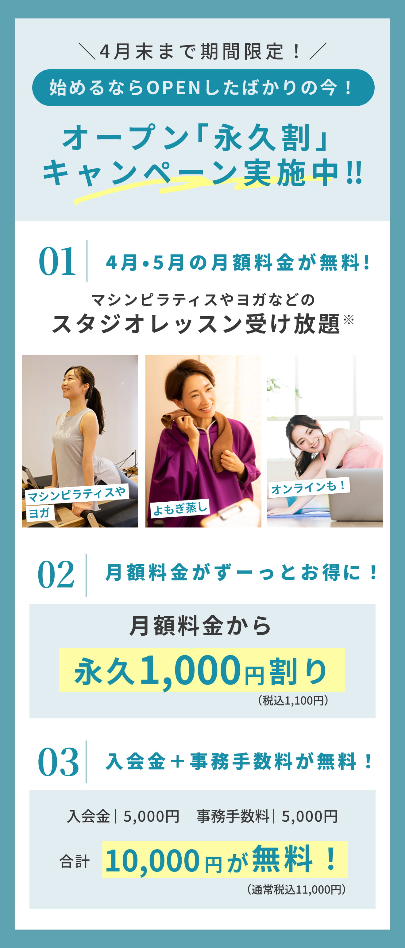 - 人数制限のあるキャンペーンの場合は、ご入会人数が上限に達した場合、キャンペーンは期限前に終了させていただくことがございます