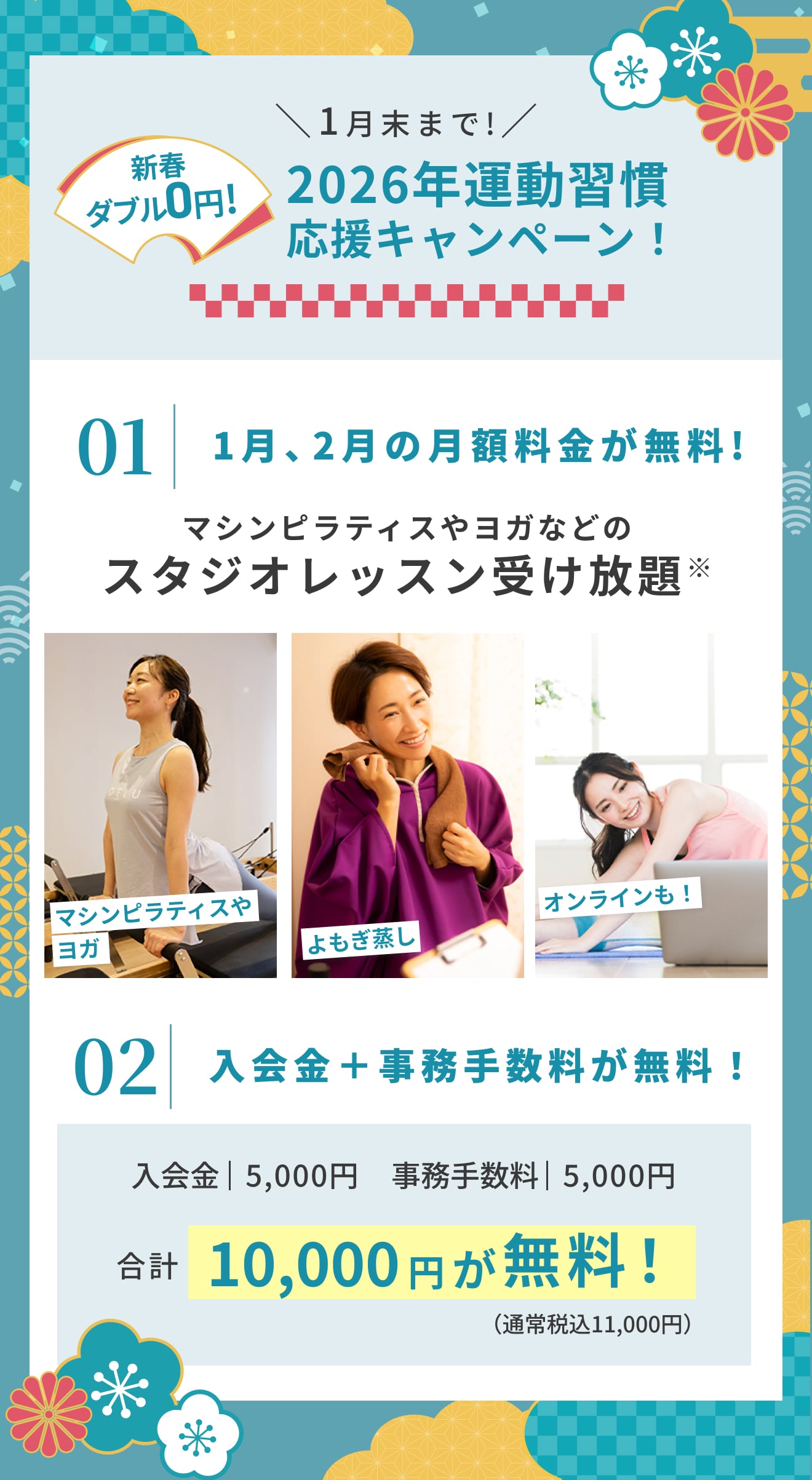 - 人数制限のあるキャンペーンの場合は、ご入会人数が上限に達した場合、キャンペーンは期限前に終了させていただくことがございます