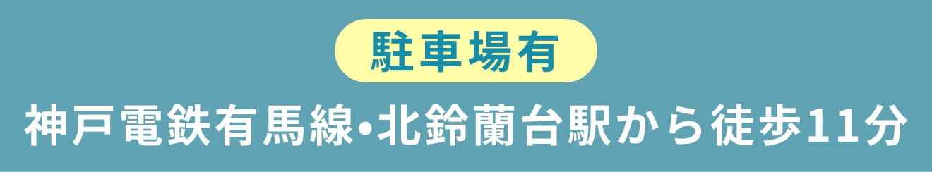 神戸電鉄有馬線「北鈴蘭台駅」から徒歩11分、神戸電鉄有馬線「山の街駅」から徒歩19分(※各線「三宮」「三ノ宮」駅より30~40分程度)のところにあります。(駐車場:有/40台)