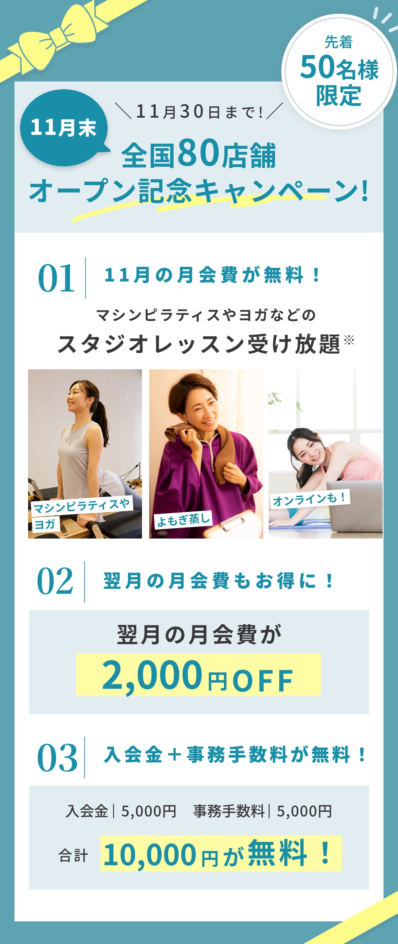- 人数制限のあるキャンペーンの場合は、ご入会人数が上限に達した場合、キャンペーンは期限前に終了させていただくことがございます
