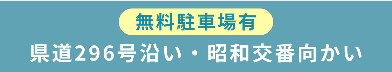 県道296号(大蔵到津線)沿い・昭和交番前交差点・昭和交番向かい・南小倉駅から車で9分・昭和町バス停から徒歩1分にあります。