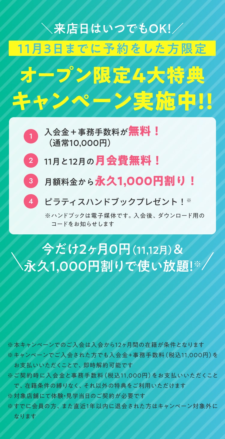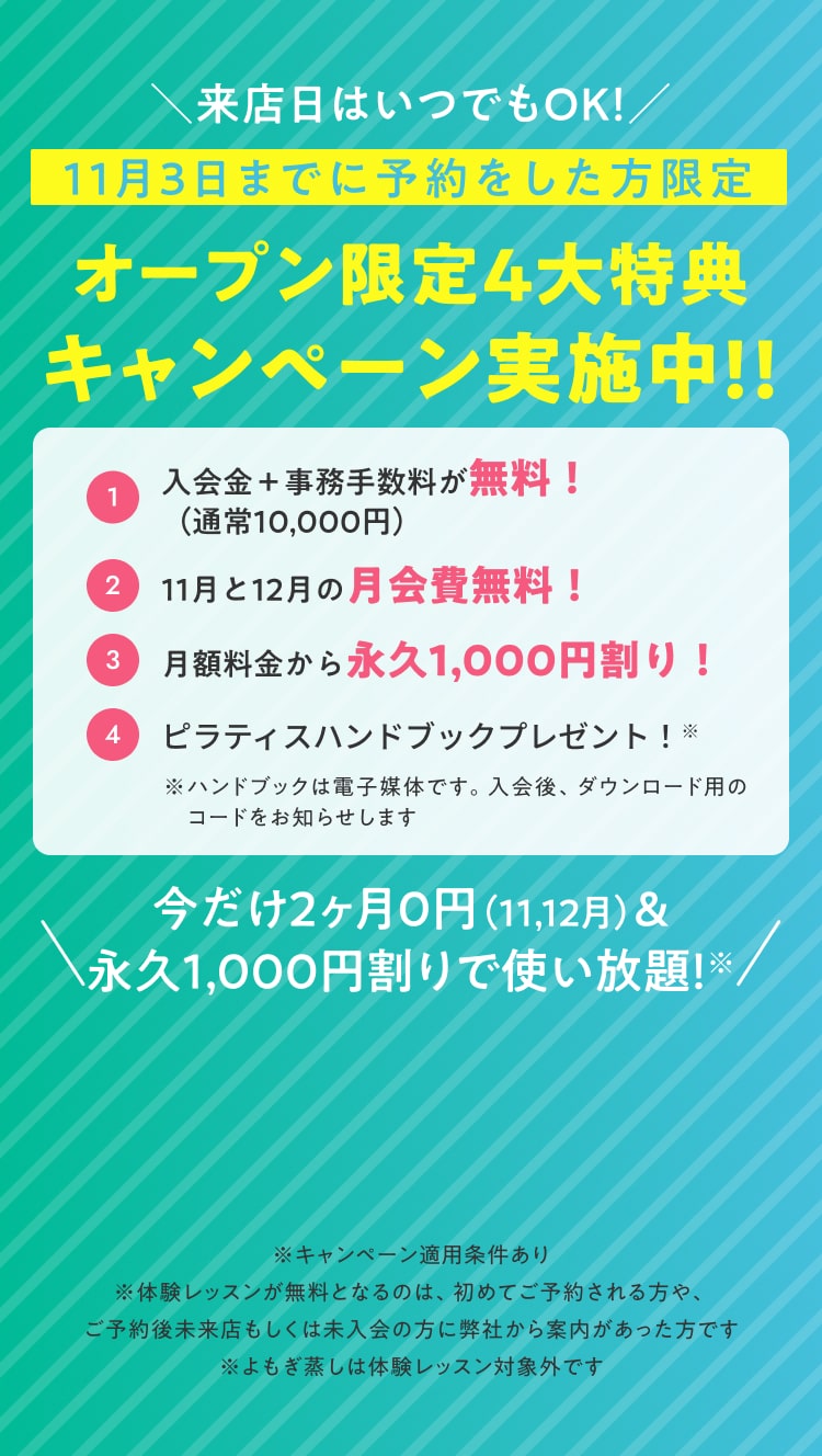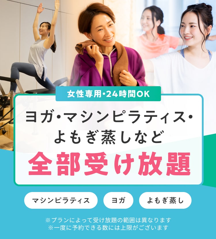 マシンピラティスやよもぎ蒸しを含む全てのサービスが受け放題